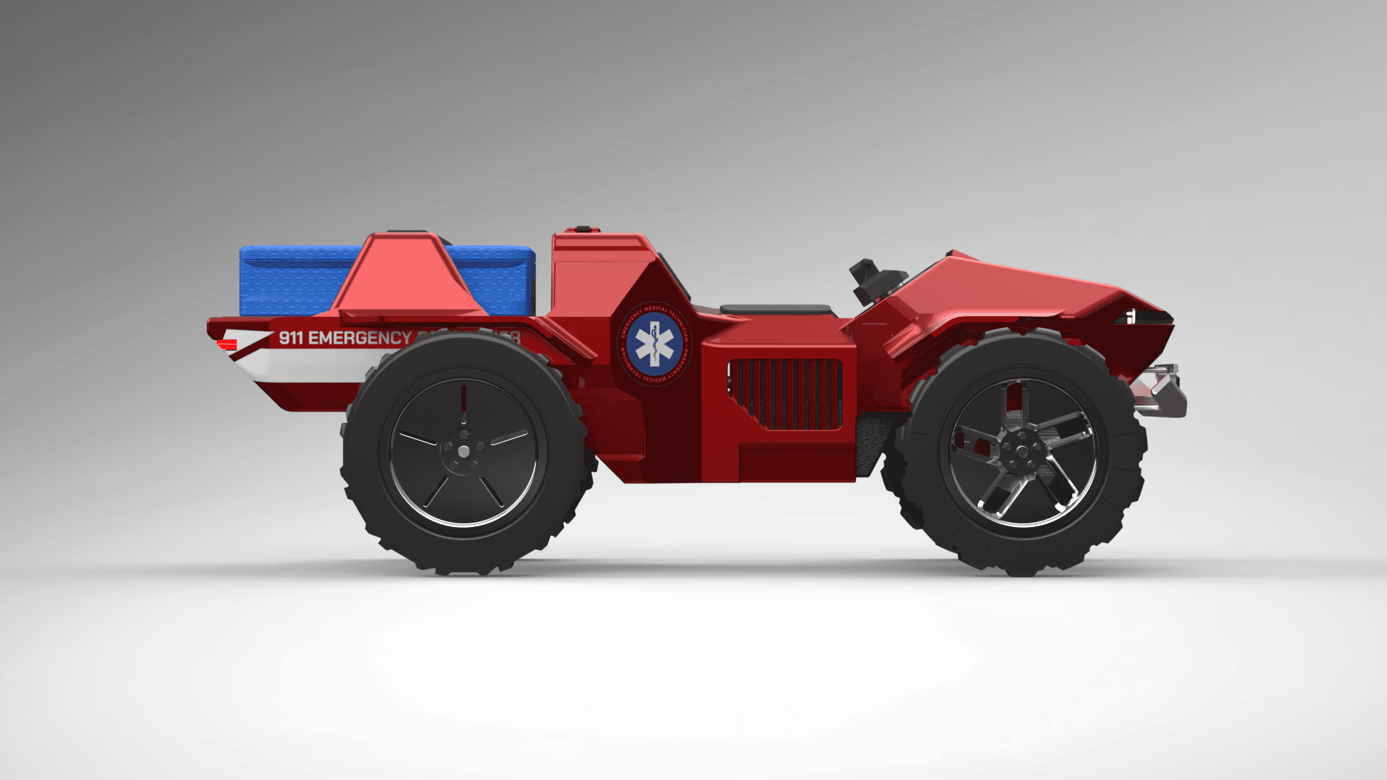 A high-speed, flood-capable ATV designed for emergency response in hurricane-prone coastal regions. Inspired by amphibious biology and built for intuitive maneuverability, this vehicle supports rapid medical transport and dual-responder operation across compromised terrain.