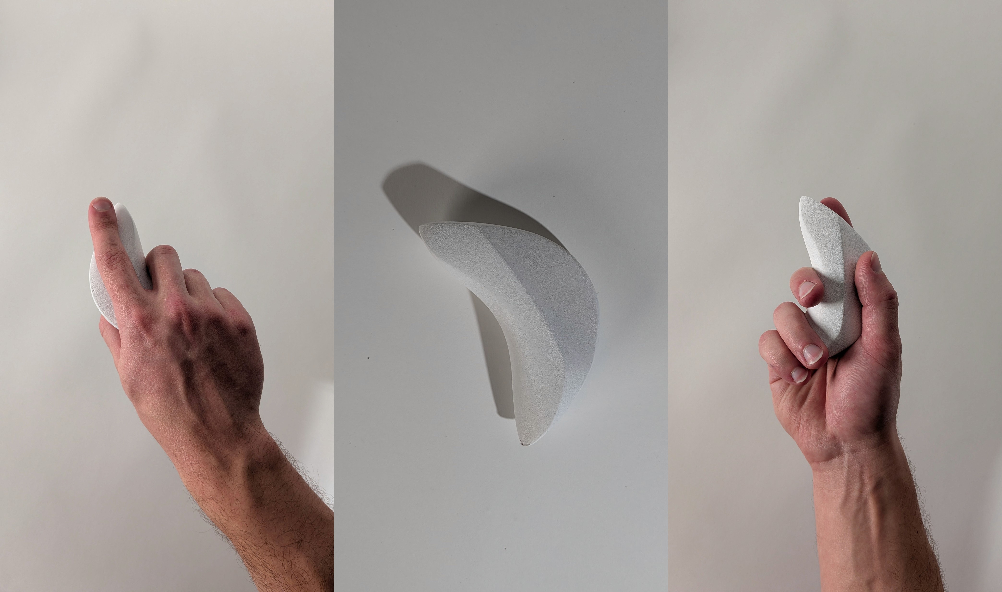With that foundation in place, the work shifted toward translation. I moved from clay to foam and began shaping new forms that responded to the same gesture in different ways. Each material introduced its own behavior, which required new decisions about curvature and allowance of movement. Through this progression the family of objects began to speak a shared language, one that connected the original gesture to a broader study of how form can guide and reveal interaction.